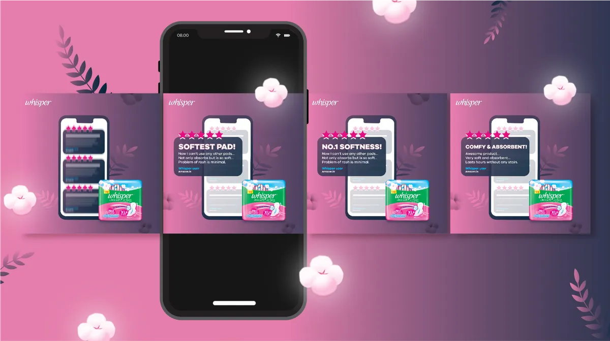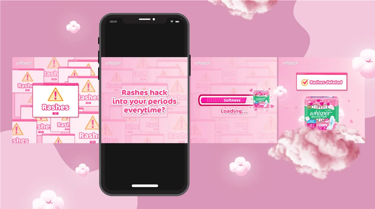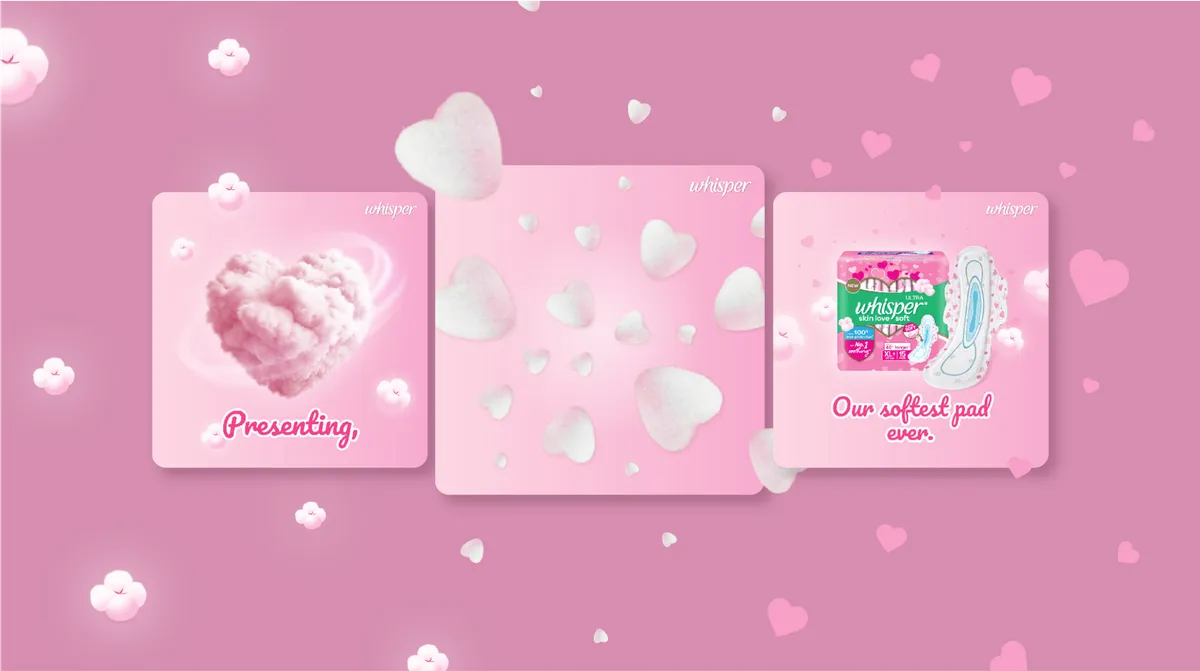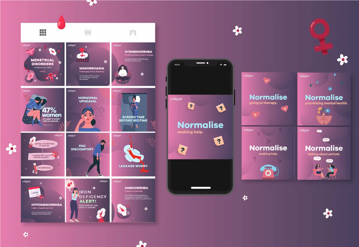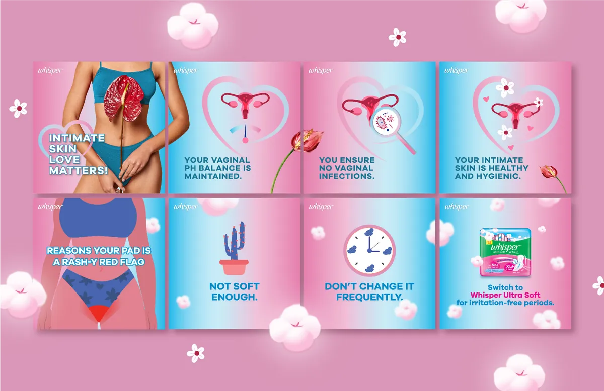 Our collaboration with Whisper India project aimed to refresh their social media presence. The redesigned campaign features vibrant aesthetics, relatable content, and an empowering message. Through multimedia elements and interactive features, we created a more engaging online space, fostering inclusivity and open conversations around feminine hygiene. The revamped social media strategy reflects Whisper India's commitment to celebrating femininity, empowering women, and breaking taboos surrounding menstrual health.
